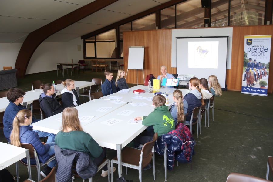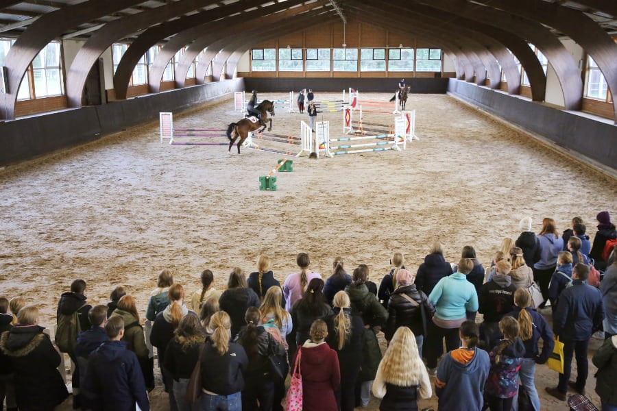 Ausgestattet mit Programmheft und Übersichtsplan als „Wegweiser“ durch einen prall gefüllten Landesjugendtag mit insgesamt 20 verschiedenen Workshops, ging es am Samstag um 10 Uhr los. Das Jugend-Team des PSV Hannover unterstützte den Landesjugendtag fleißig bei der gesamten Organisation und war von Catharina Pfeiffer, die in der Geschäftsstelle u.a. für den Bereich Jugendarbeit zuständig ist, bestens auf ihren Einsatz vorbereitet worden. Zwei Workshops zur Ausbildung von Dressur- und Springpferden wurden mit den Jungzüchtern vom Hannoveraner Verband gemeinsam organisiert. So hatten alle Gelegenheit, die Hengste live zu erleben und erhielten gleichzeitig Einblicke in den Arbeitsalltag des Landgestüts.